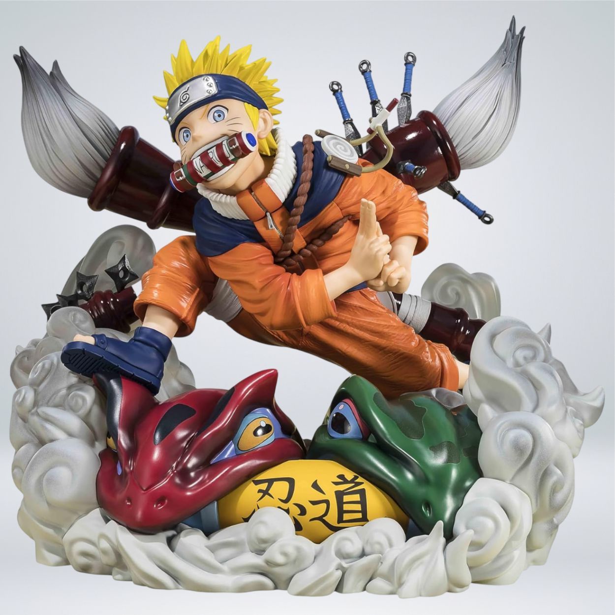 ¡Una pieza imprescindible para cualquier fan de Naruto! Esta espectacular figura Figuarts ZERO Naruto Uzumaki -NARUTO 72 Series- conmemora el épico final del manga, recreando en impresionante detalle 3D la icónica ilustración de la portada del volumen final. Fabricada por Bandai Spirits y Tamashii Nations, esta estatuilla de PVC y ABS mide aproximadamente 19.5 cm de alto, presentando un modelado dinámico y meticuloso. La pose de acción captura la energía de Naruto, complementada por efectos de nubes de humo y las representaciones del dragón rojo y verde a sus pies, diseñados con material translúcido para un acabado vibrante y realista. Es una pieza estática de alta calidad, perfecta para exhibir en cualquier colección, que ofrece una vista espectacular y detallada desde todos los ángulos.