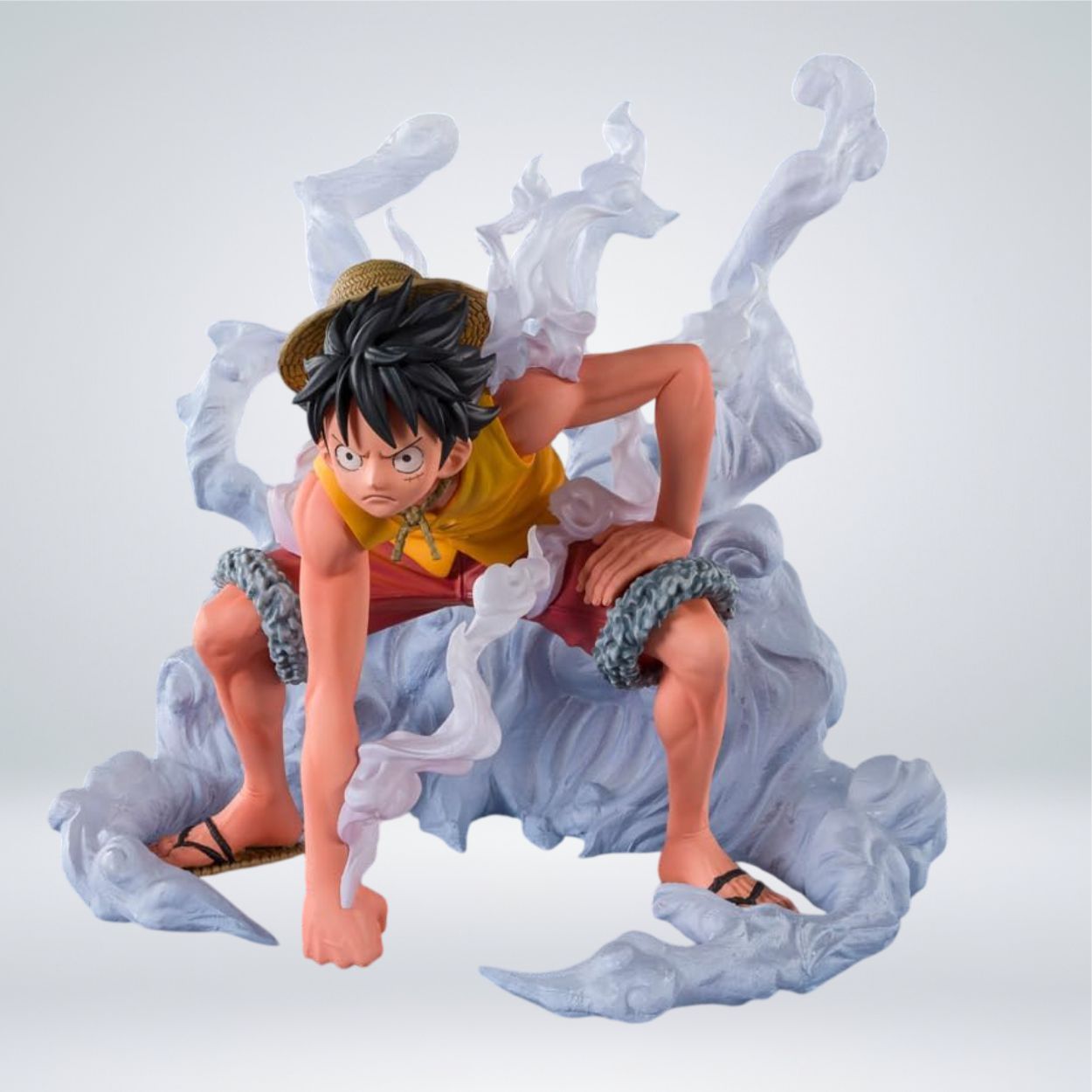 Esta figura de colección de la línea Figuarts ZERO de Bandai Spirits presenta a Monkey D. Luffy en su versión «Paramount War», capturando al protagonista de One Piece en su desesperado intento por rescatar a Ace en Marineford. Con una altura aproximada de 12 centímetros (unas 4.7 pulgadas), la estatua destaca por su pose dinámica agachada y el uso de efectos de humo traslúcido que envuelven su cuerpo, simulando la activación de su técnica Gear Second. Fabricada en materiales de alta calidad como PVC y ABS, esta pieza ofrece un esculpido detallado que refleja la determinación y el desgaste físico del personaje en uno de los arcos más icónicos del anime, convirtiéndola en un artículo imprescindible para cualquier estantería de un verdadero nakama.