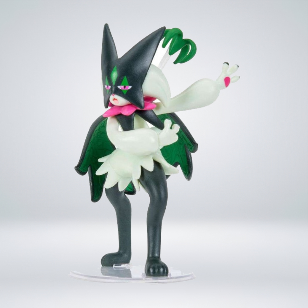 Esta es la Figura de Acción de Lujo Meowscarada Battle Feature de Pokémon, fabricada por