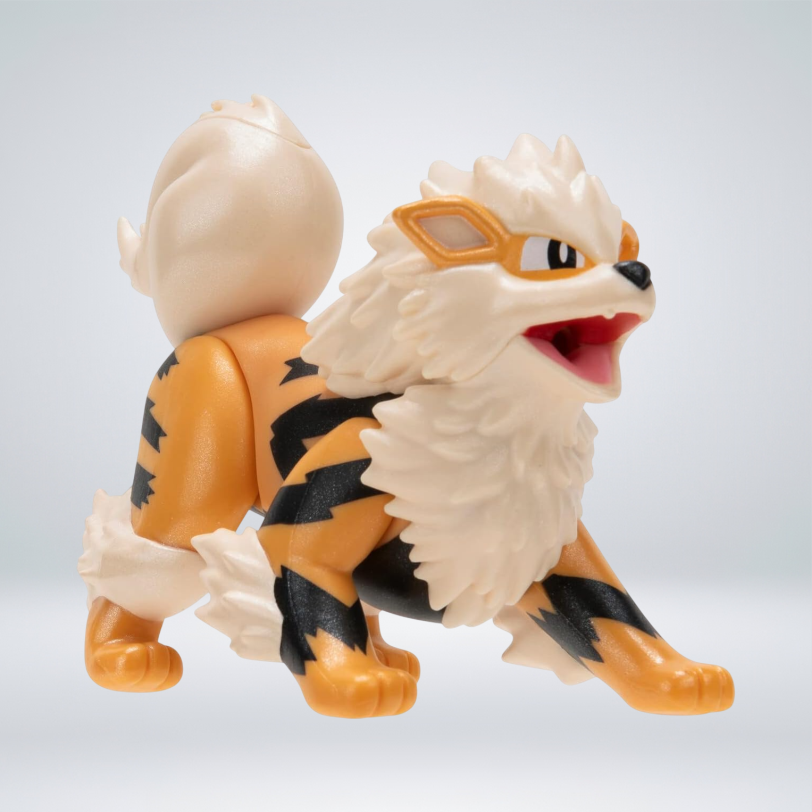Arcanine: La figura de 4.5 pulgadas de Arcanine representa al majestuoso Pokémon de tipo Fuego. Arcanine es la evolución final de Growlithe y es conocido por su velocidad y poder. ¡Es un compañero formidable en tus aventuras Pokémon!