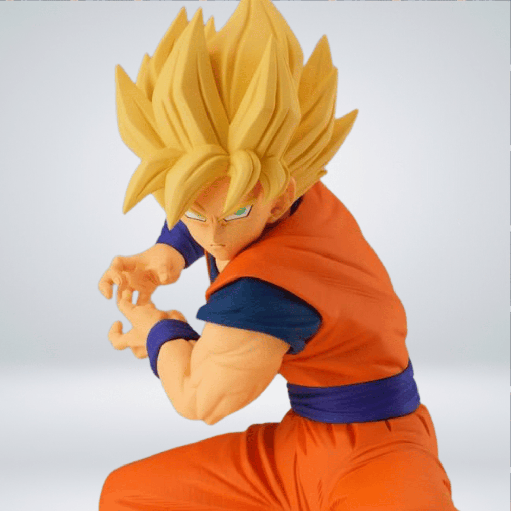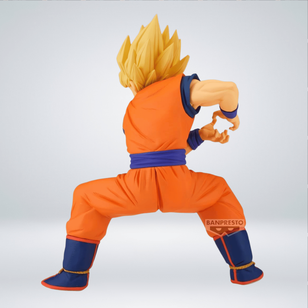 Con aproximadamente 22 cm de alto, Son Goku se ve en su postura icónica