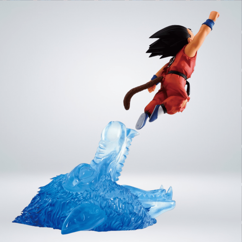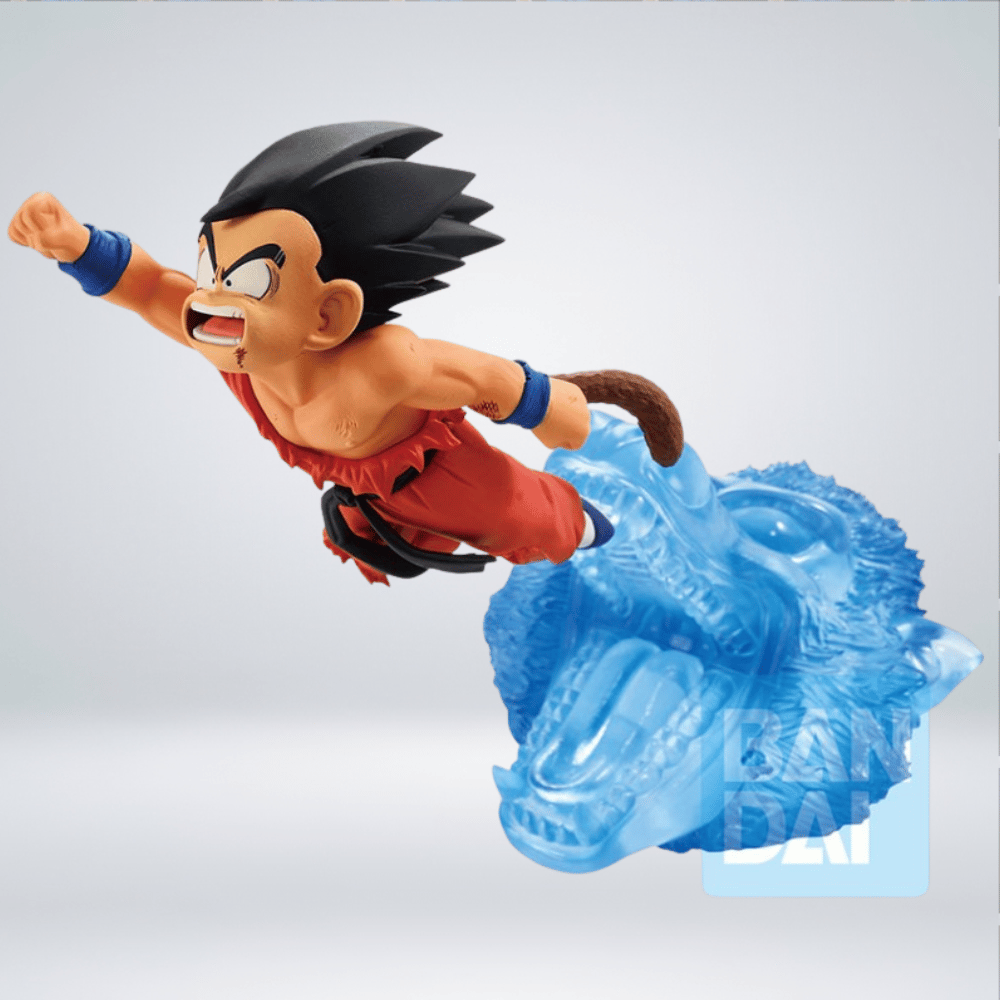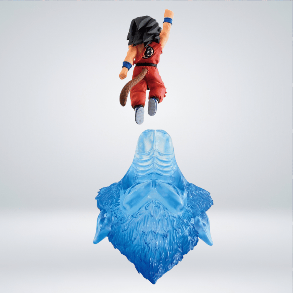 La Ichibansho Figure – Son Goku (Dragon History II) Revible Moment es una figura de PVC altamente coleccionable de aproximadamente 17 cm de alto, fabricada por Bandai Spirits. Esta pieza captura la icónica escena de la infancia de Goku donde, en una pose de ataque dinámica, derrota al Rey Demonio Piccolo, con la silueta de un Gran Simio visible en la base de efecto de energía azul transparente. Es un artículo «Premio A». No articulado e ideal para coleccionistas.