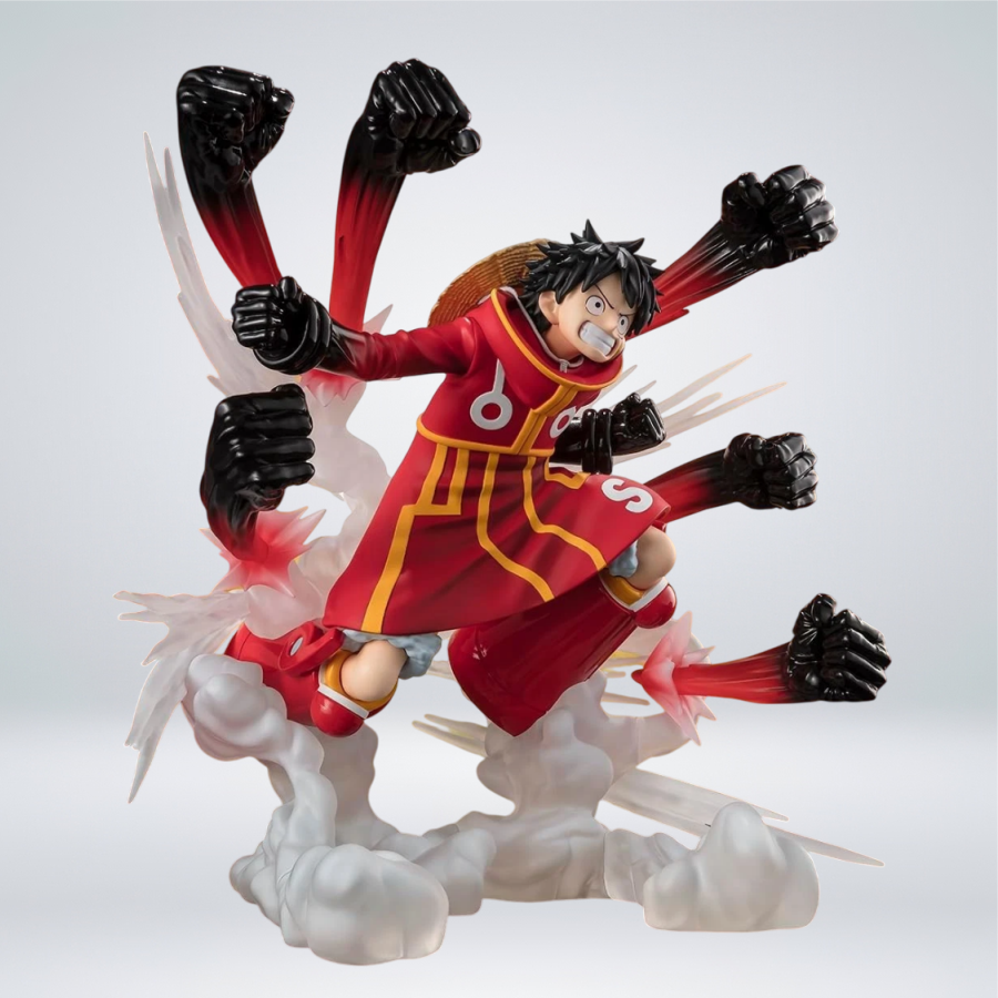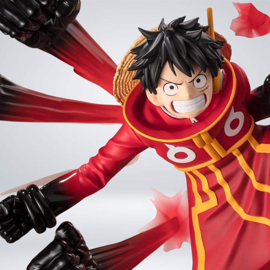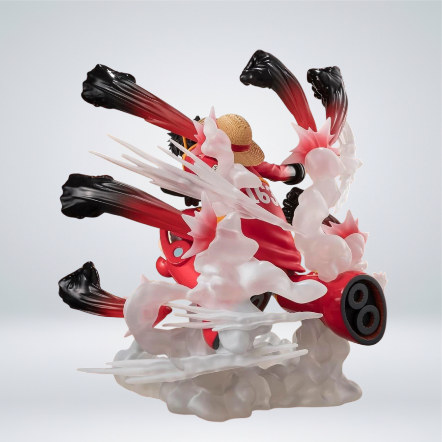 Inspirada en la escena en la que se lanza la futura versión de traje de Monkey D. Luffy, publicada en la edición Egghead, la pistola Gum-Gum Hawk (Hawk Gatling), ¡está acompañada de brazos cubiertos de caqui y poderosos efectos de humo!