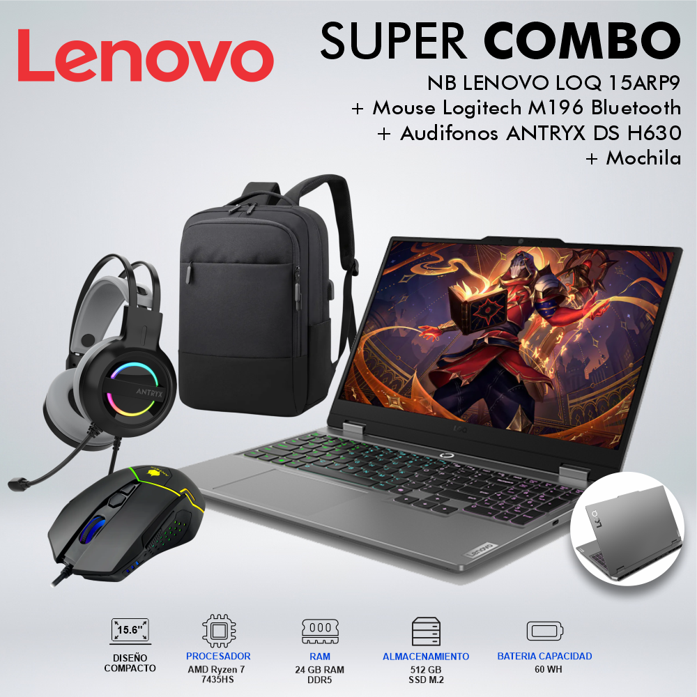 LAPTOP LENOVO GAMING LOQ 15ARP9 + MOUSE + AUDIFONO + MOCHILA