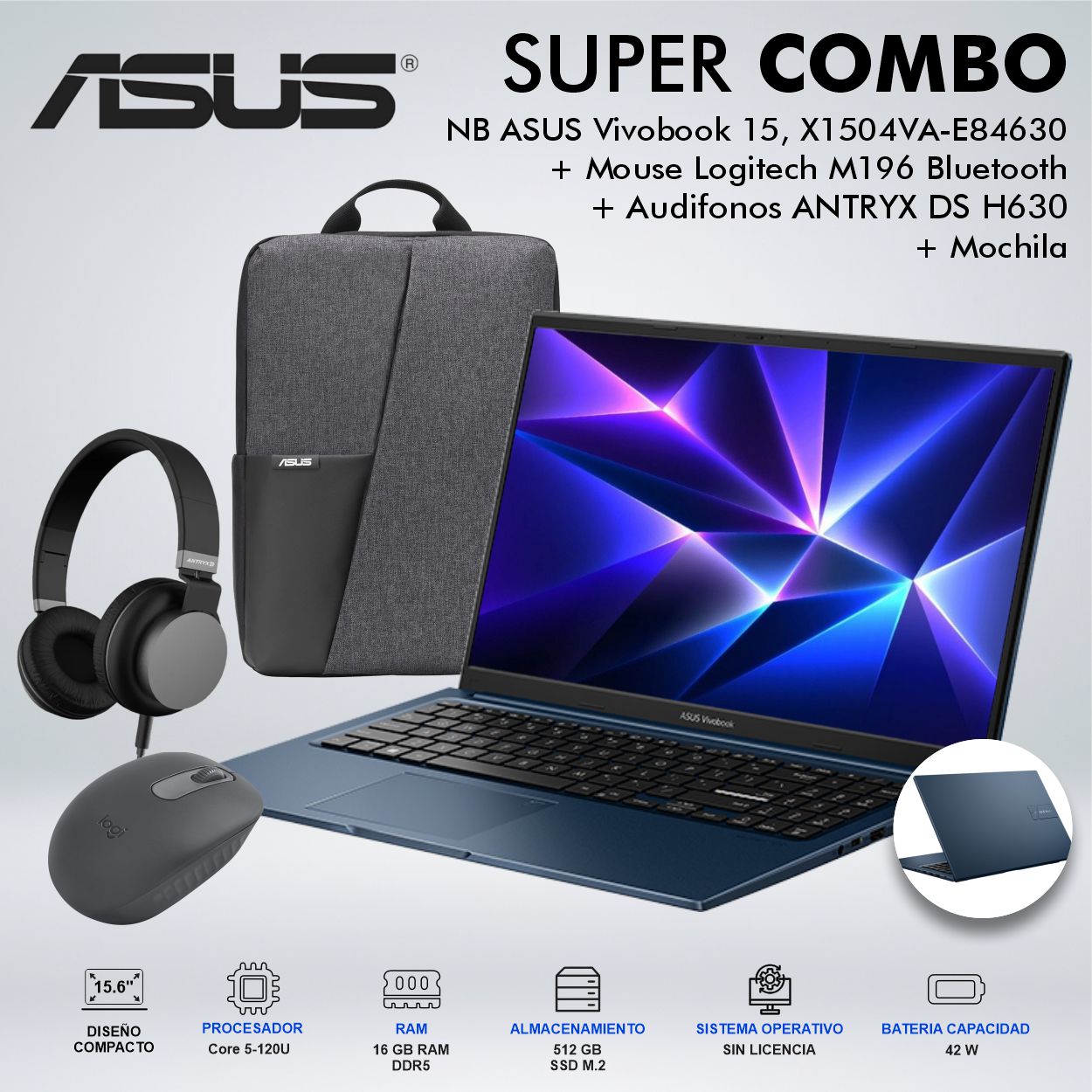NOTEBOOK + MOUSE + AUDIFONO + MOCHILA