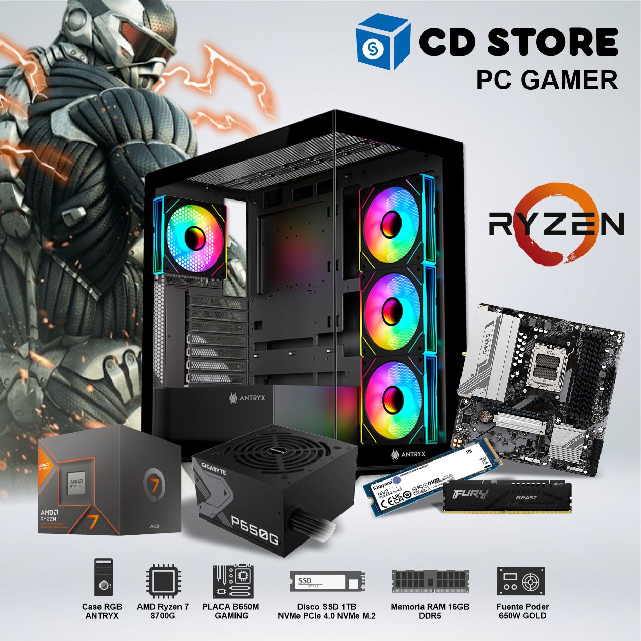 PC Gamer – RYZEN 7 8700G, RAM 16GB SSD 1TB CASE RGB FUENTE GOLD 650W
