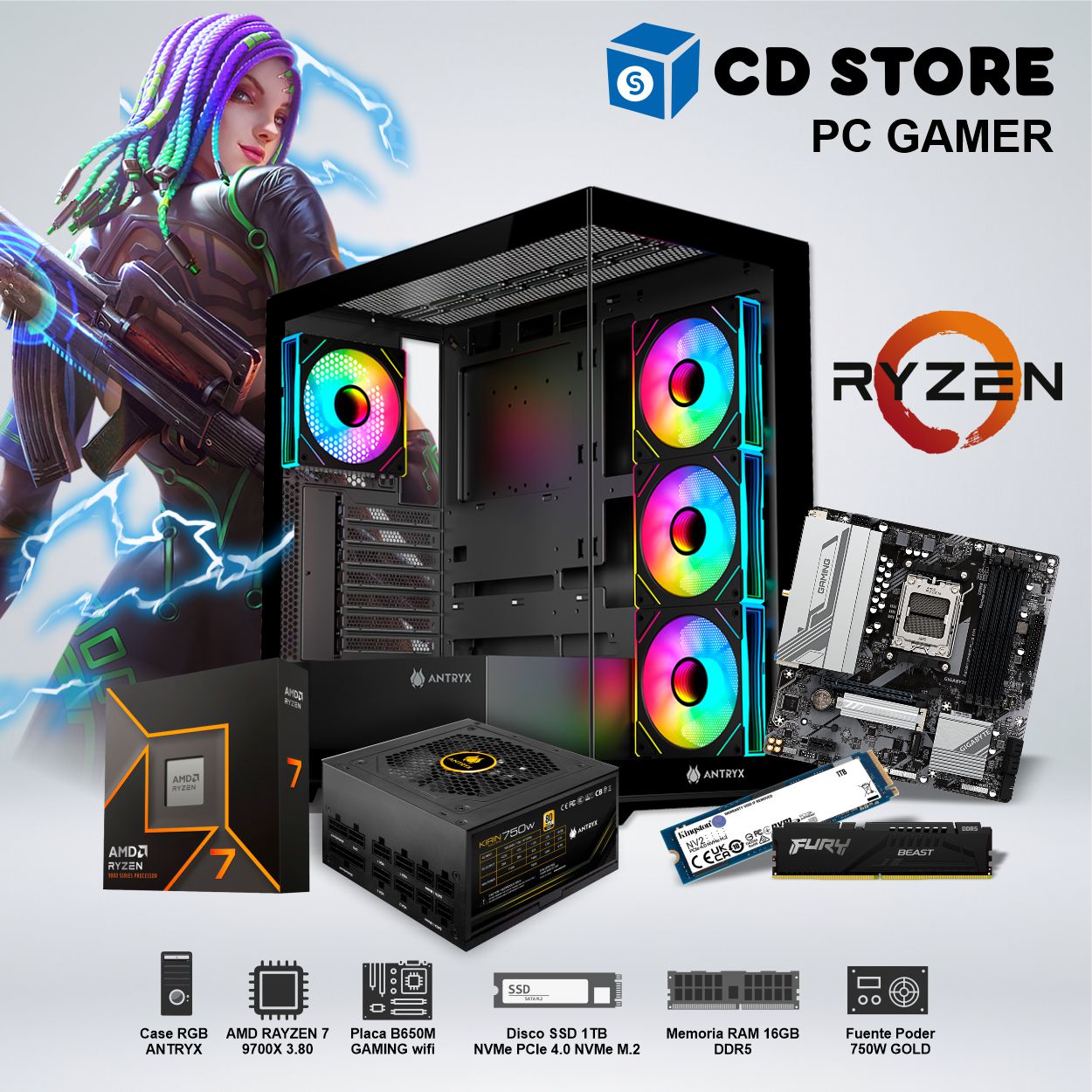PC Gamer – RYZEN 5 9600X RAM 16GB SSD 1TB CASE RGB FUENTE GOLD 750W