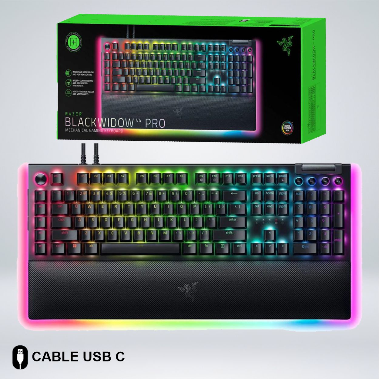 TECLADO GAMER RAZER BLACKWIDOW V4 PRO SWITCHES GREEN COMAND DIAL