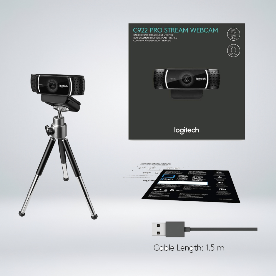 Conexión extremadamente nítida en directo para canales como Twitch y YouTube. Haz streaming de lo que quieras y elige entre Full HD 1080p a 30 fps o superrápido HD 720p a 60 fps. Graba y haz streaming de videos totalmente naturales. Con la lente de cristal y Full HD 1080p se capturan sorprendentes detalles, y colores vivos y naturales en video a 30 fps. Y el campo visual de 78 grados da cabida a dos personas. Puedes usar la aplicación para funciones de zoom y panorámica.  Quienes hacen streaming en serio necesitan la frecuencia de cuadro superrápida de 60 fps a 720p para que el video sea realmente fluido, y eso es lo que hace la C922. Tu difusión por streaming no tendrá demoras ni distorsiones. Con dos micrófonos, uno a cada lado, la cámara Web profesional C922 es capaz de capturar sonido más realista desde cualquier ángulo, para que tu voz se oiga clara y natural.